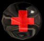 Health is represented by a floating transparent sphere with a colour coded cross in the middle. Red gives you 50%,